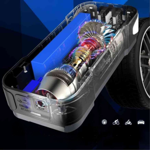 Denne intelligente og bærbare starteren gir liv til kjøretøyet ditt på noen sekunder. Den har også en luftkompressor for å pumpe opp dekkene dine uansett hvor du er. Designet for sikkerhet og praktisk bruk, kombinerer den kraft, allsidighet og pålitelighet i ett enkelt apparat.